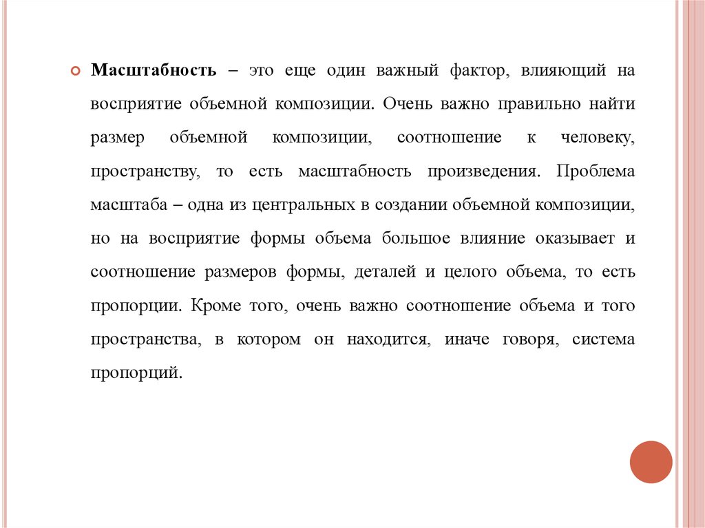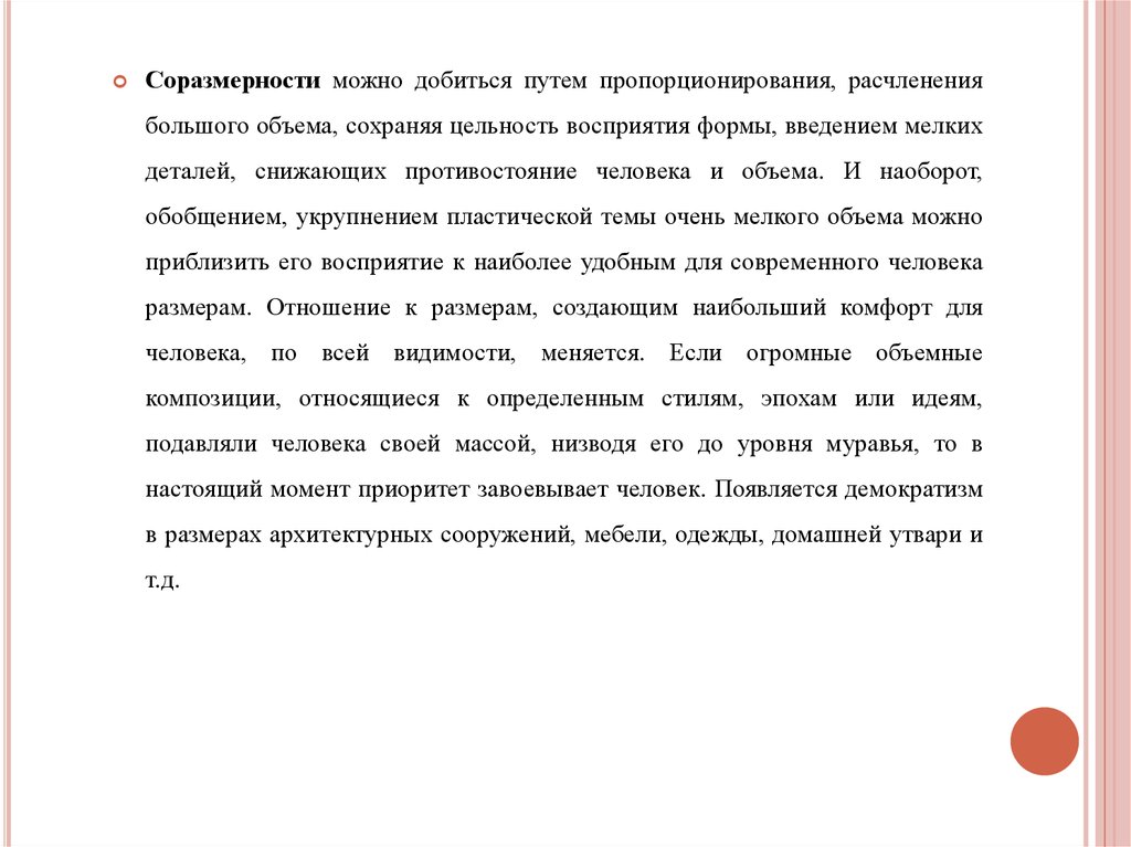 Соразмерности можно добиться путем пропорционирования, расчленениябольшого объема, сохраняя цельность восприятия формы, введением мелких