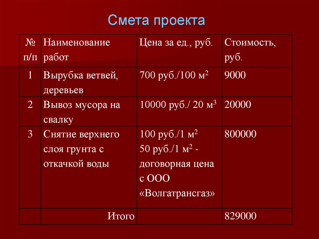 Составление сметы проекта