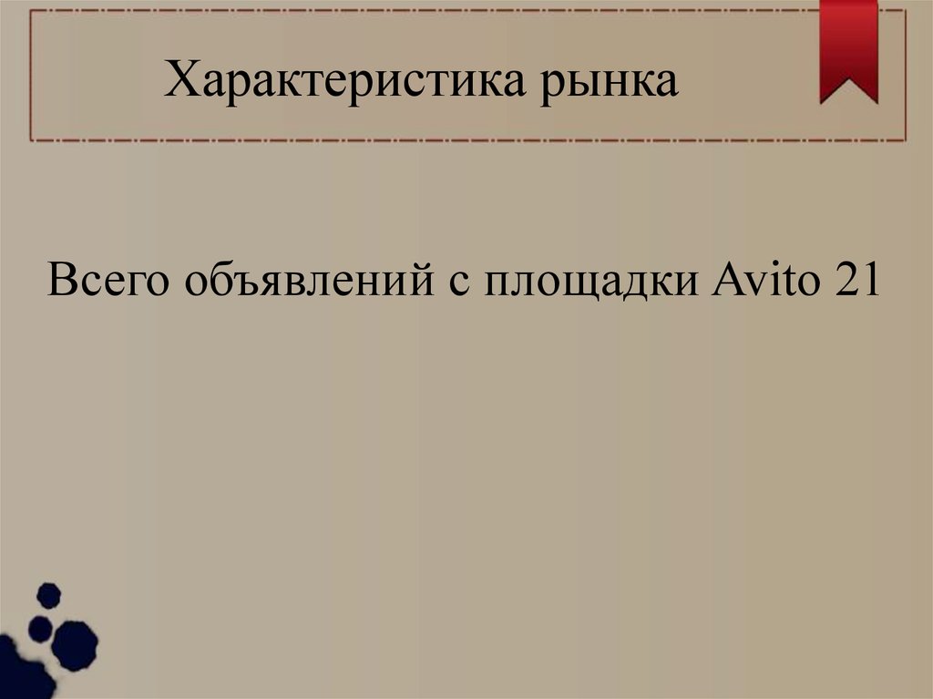 Характеристика рынкаВсего объявлений с площадки Avito 21