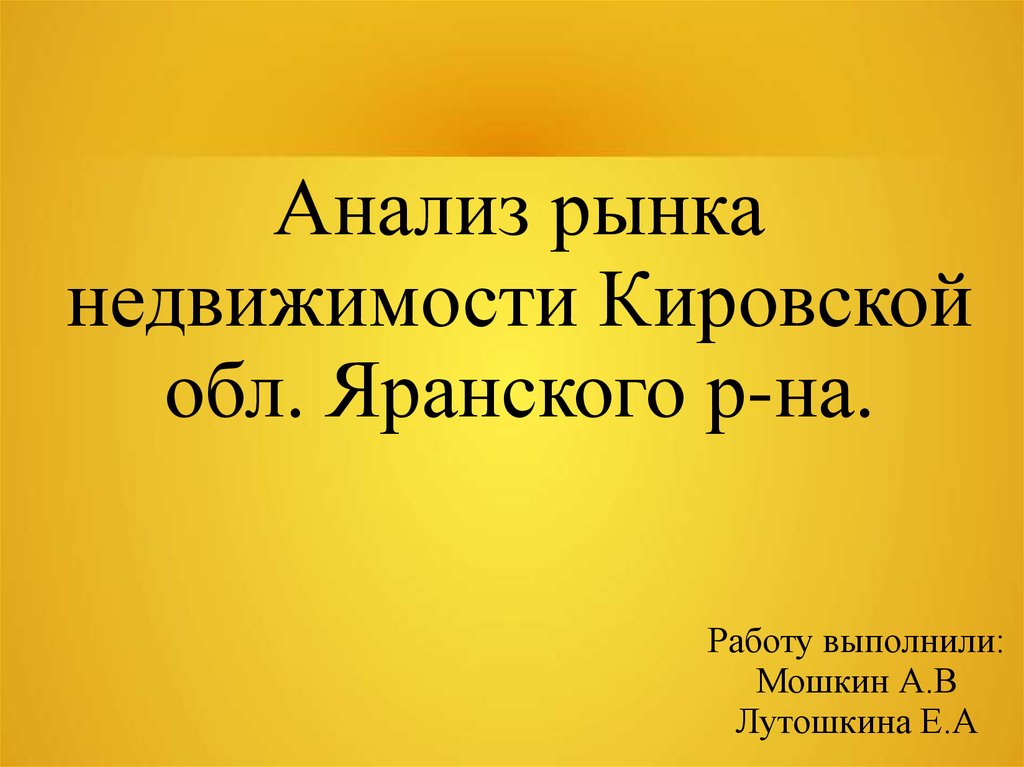 Анализ рынка недвижимости Кировской области Яранского района