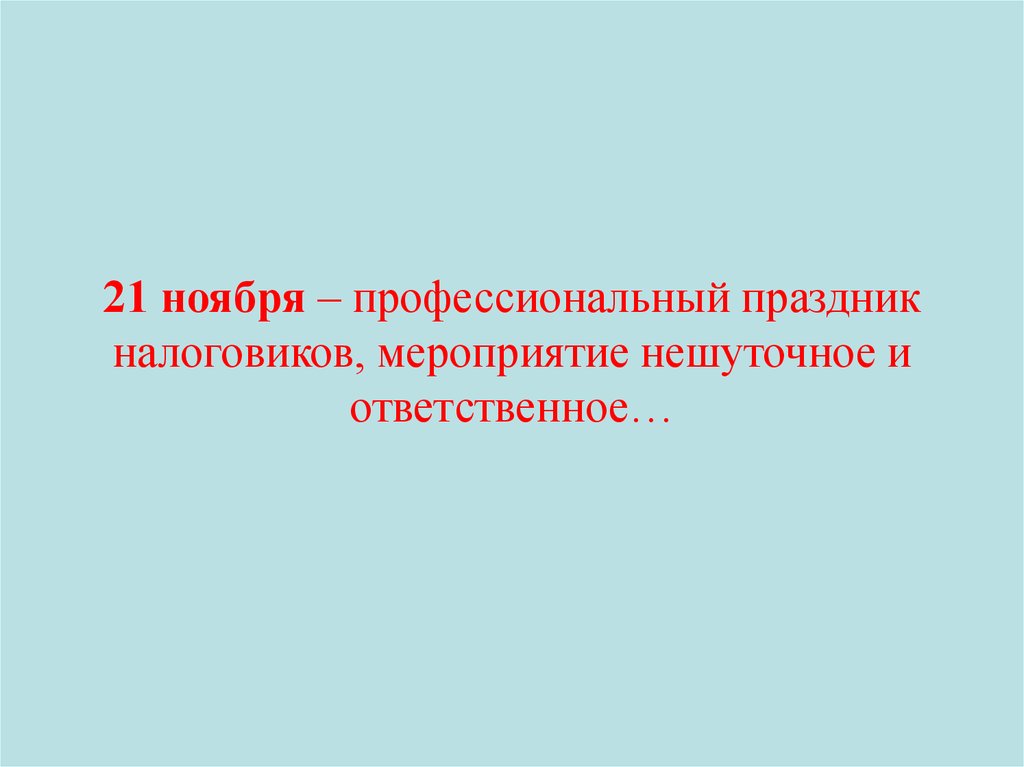 21 ноября – профессиональный праздникналоговиков, мероприятие нешуточное и