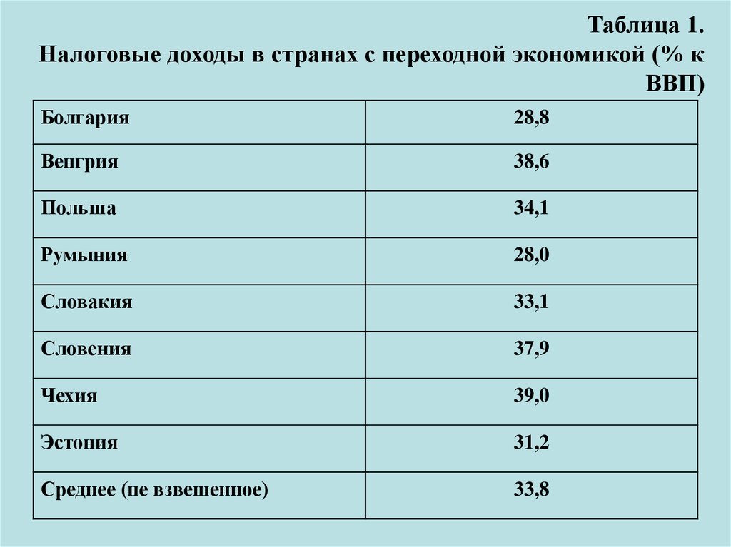 Таблица 1.Налоговые доходы в странах с переходной экономикой (% к