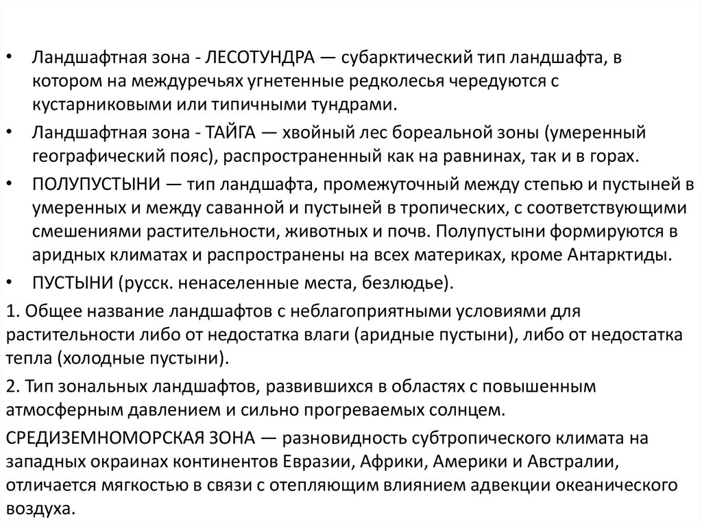 1. Общее название ландшафтов с неблагоприятными условиями для