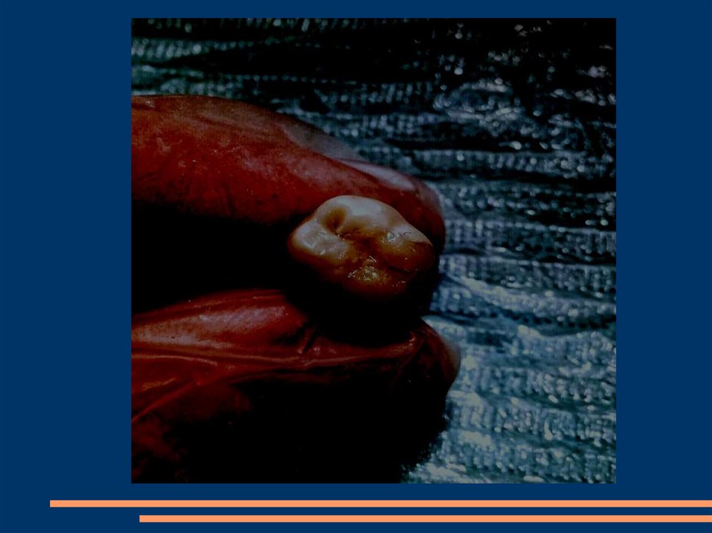 2. Предположительно зуб 47, имеет обширный дефект на дистальной поверхности