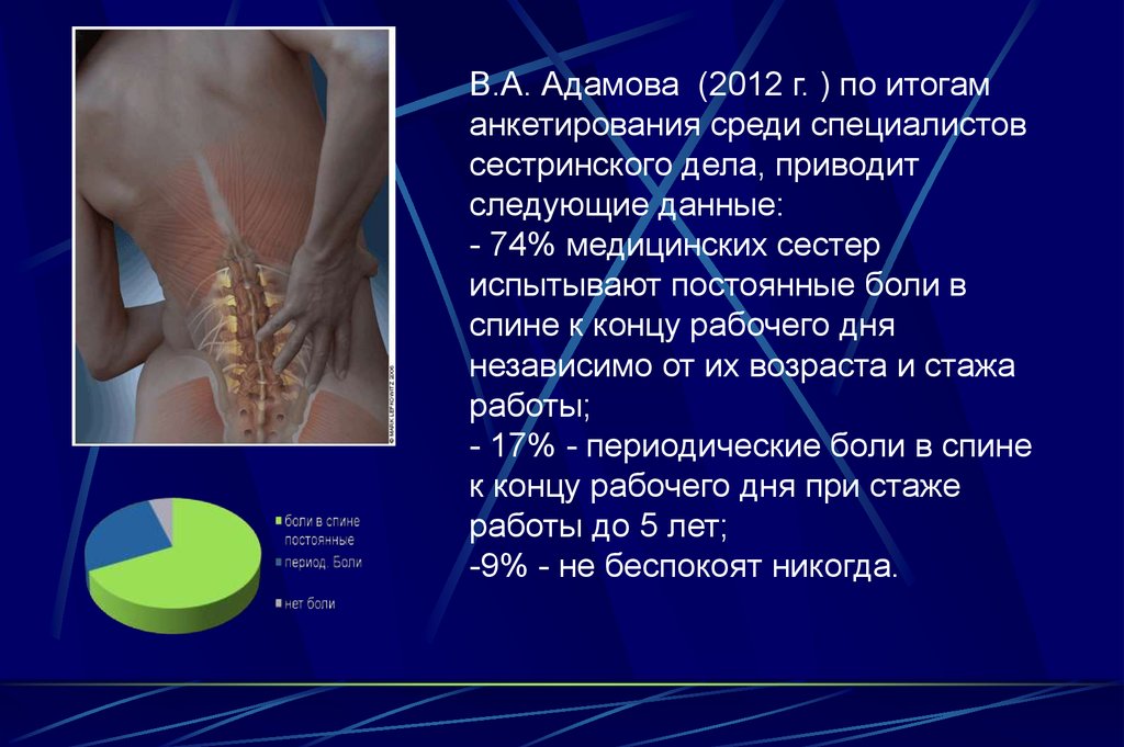 - 17% - периодические боли в спине