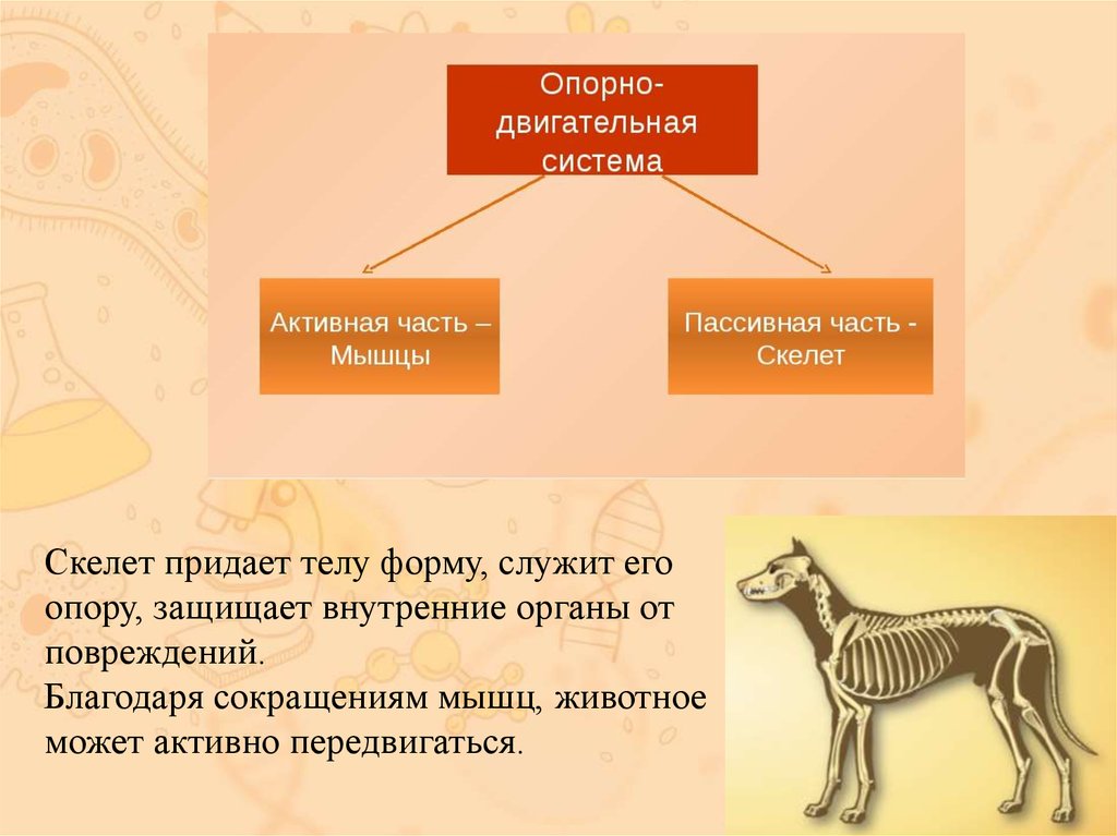 Скелет придает телу форму, служит егоопору, защищает внутренние органы от