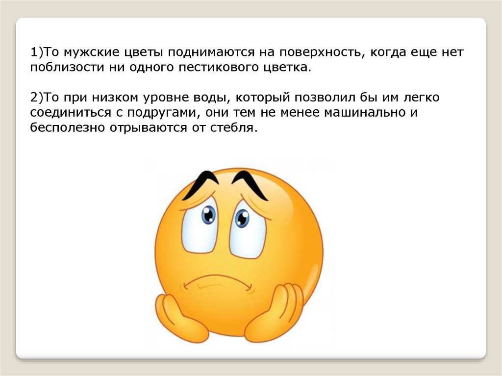 1)То мужские цветы поднимаются на поверхность, когда еще нетпоблизости ни одного пестикового цветка.