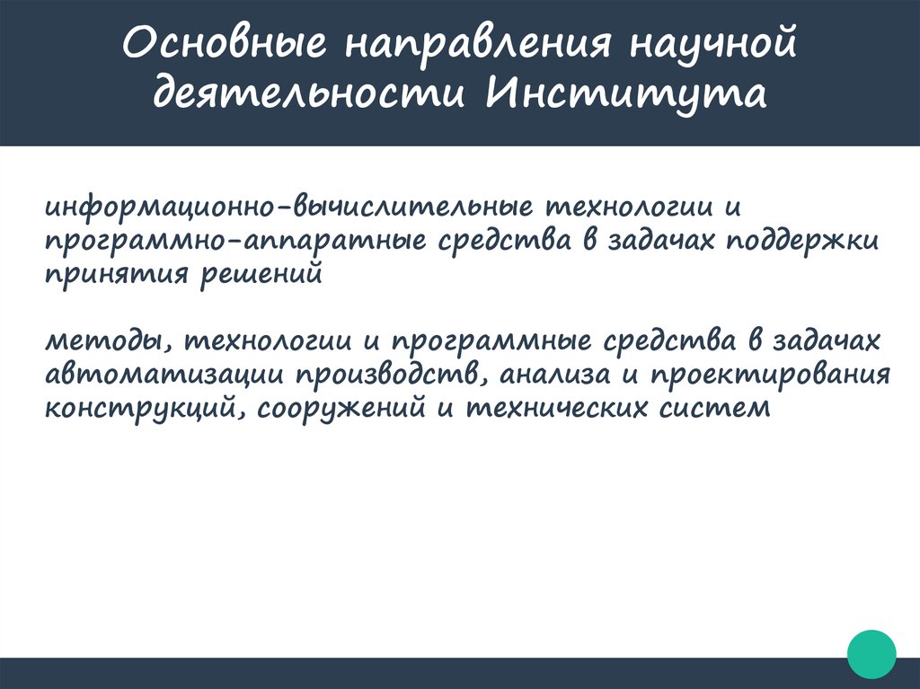 Основные направления научнойдеятельности Института