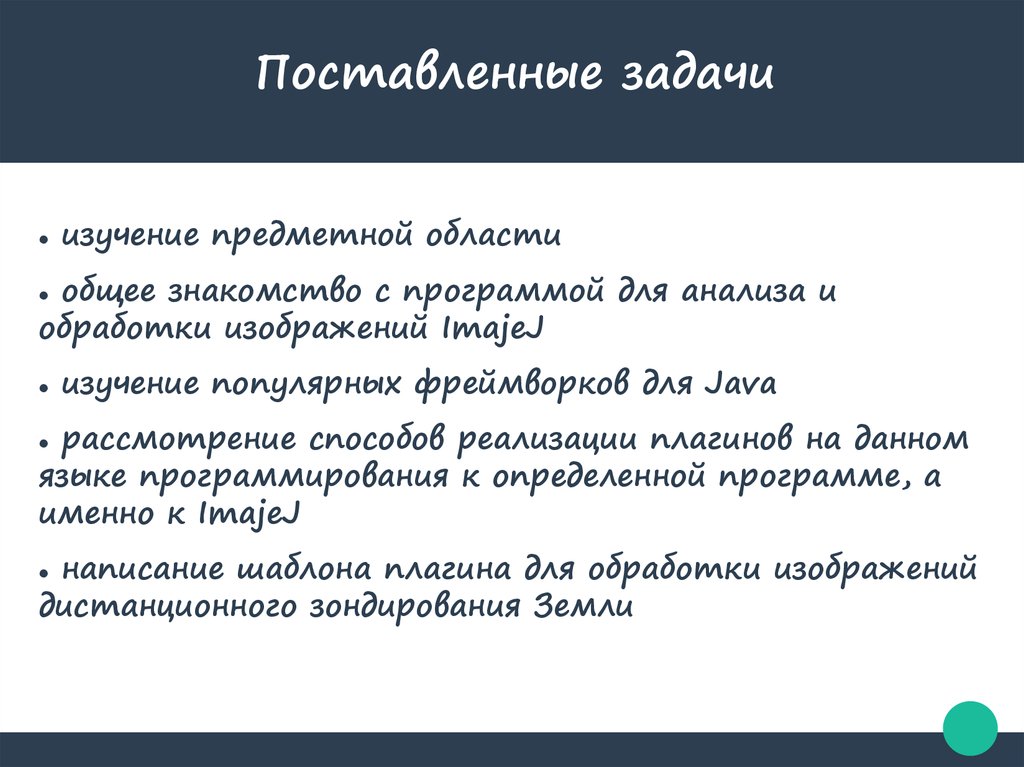 Поставленные задачиизучение предметной области