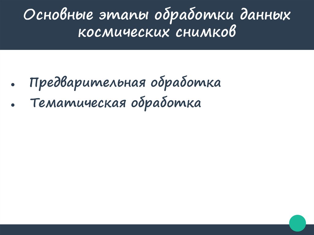 Основные этапы обработки данныхкосмических снимков