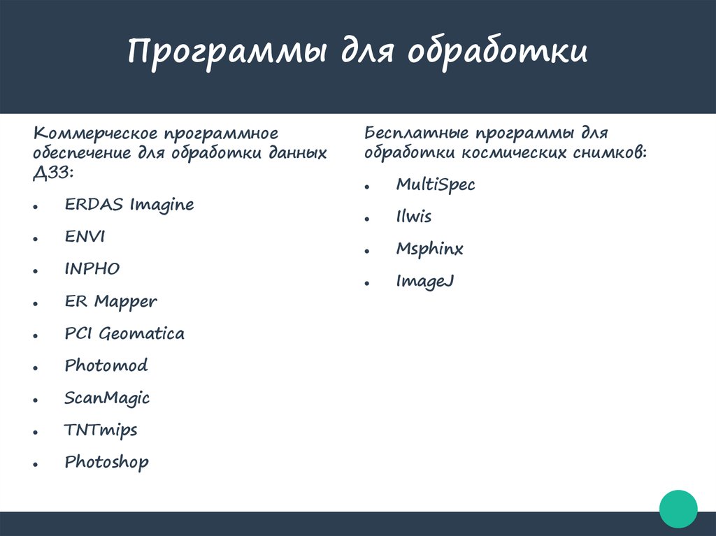 обработки космических снимков: