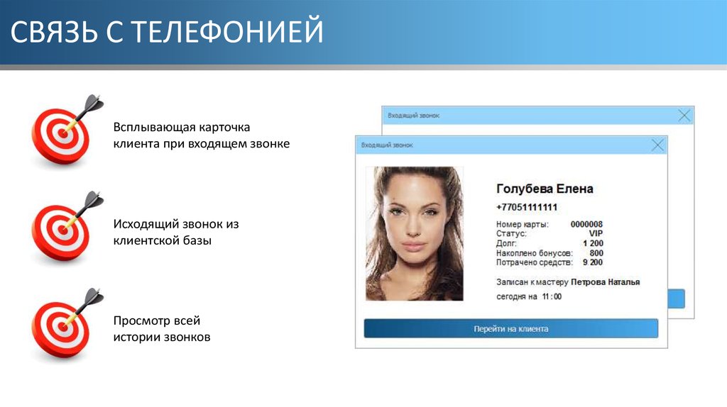 СВЯЗЬ С ТЕЛЕФОНИЕЙВсплывающая карточка