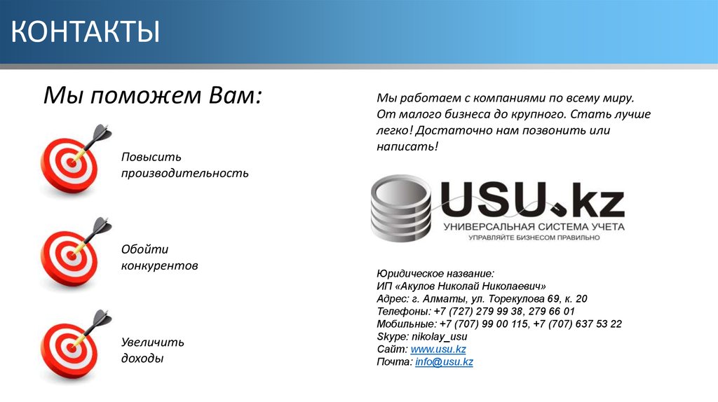 Адрес: г. Алматы, ул. Торекулова 69, к. 20