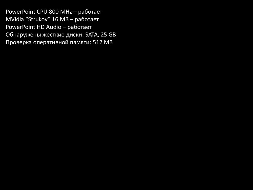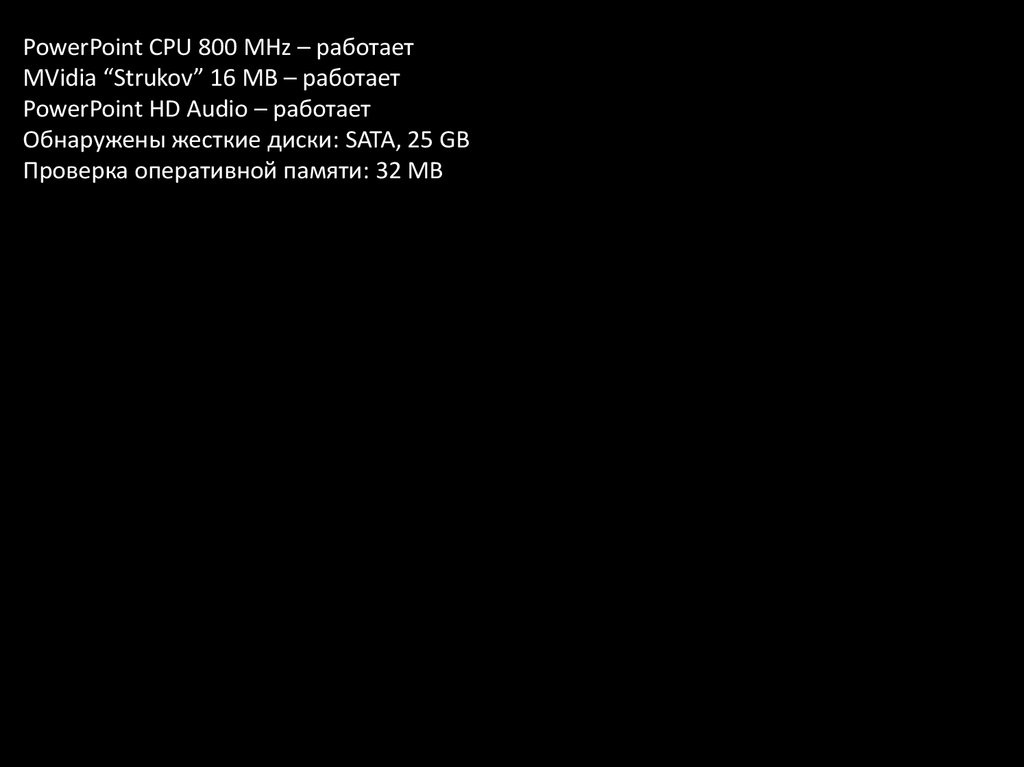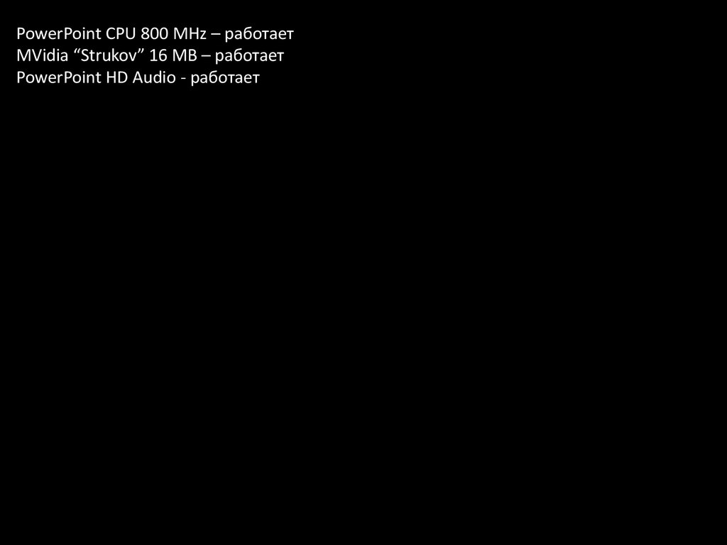 PowerPoint CPU 800 MHz – работаетMVidia “Strukov” 16 MB – работает