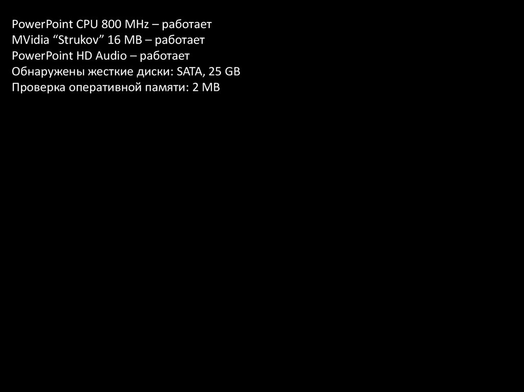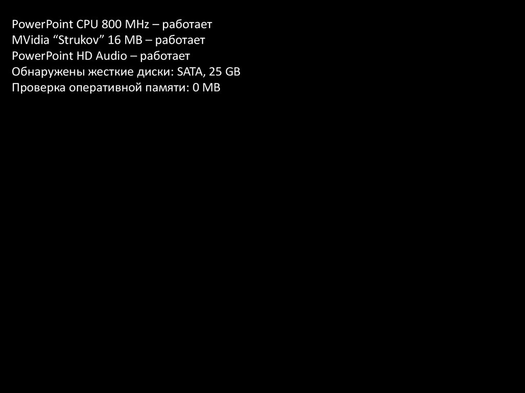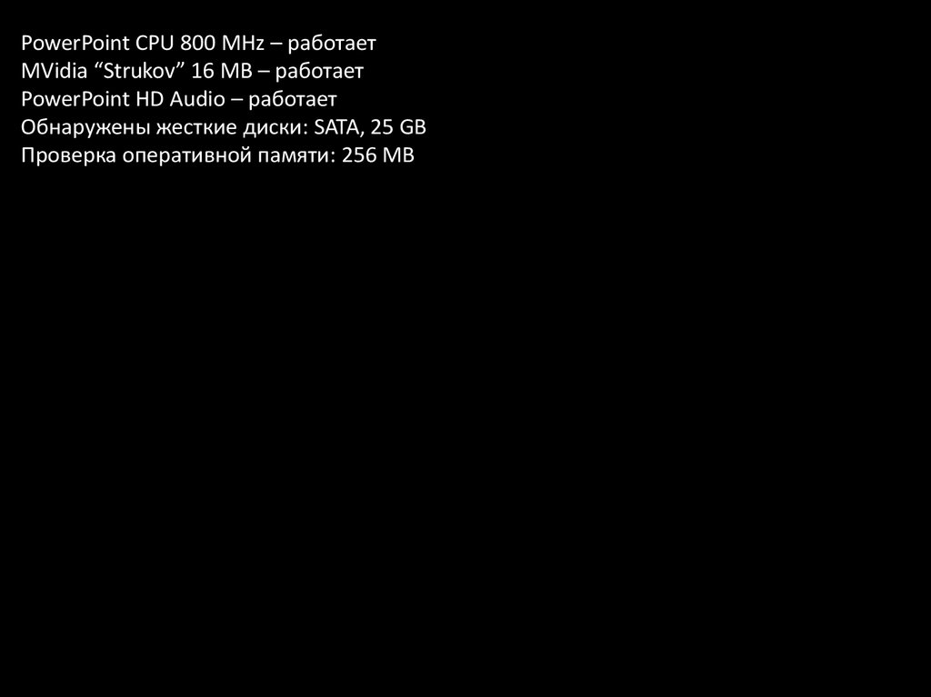 PowerPoint CPU 800 MHz – работаетMVidia “Strukov” 16 MB - работает