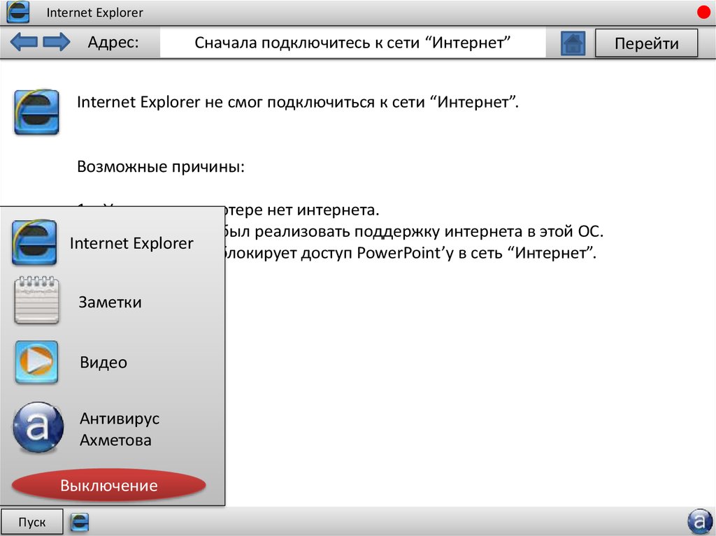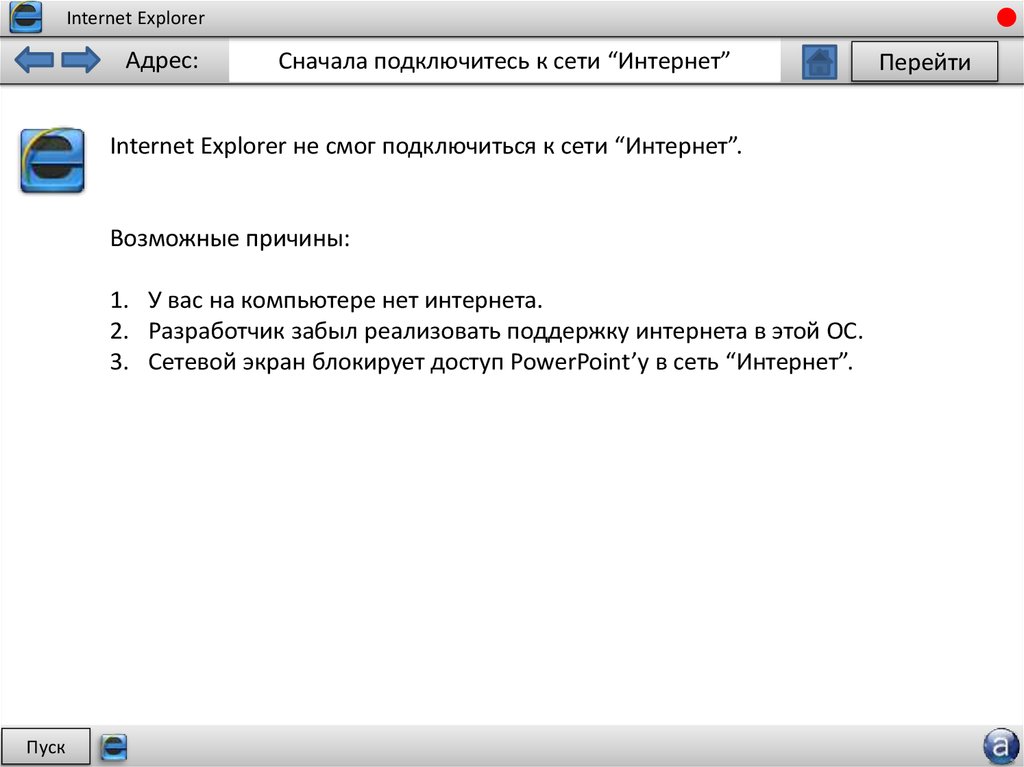 Internet Explorer не смог подключиться к сети “Интернет”.