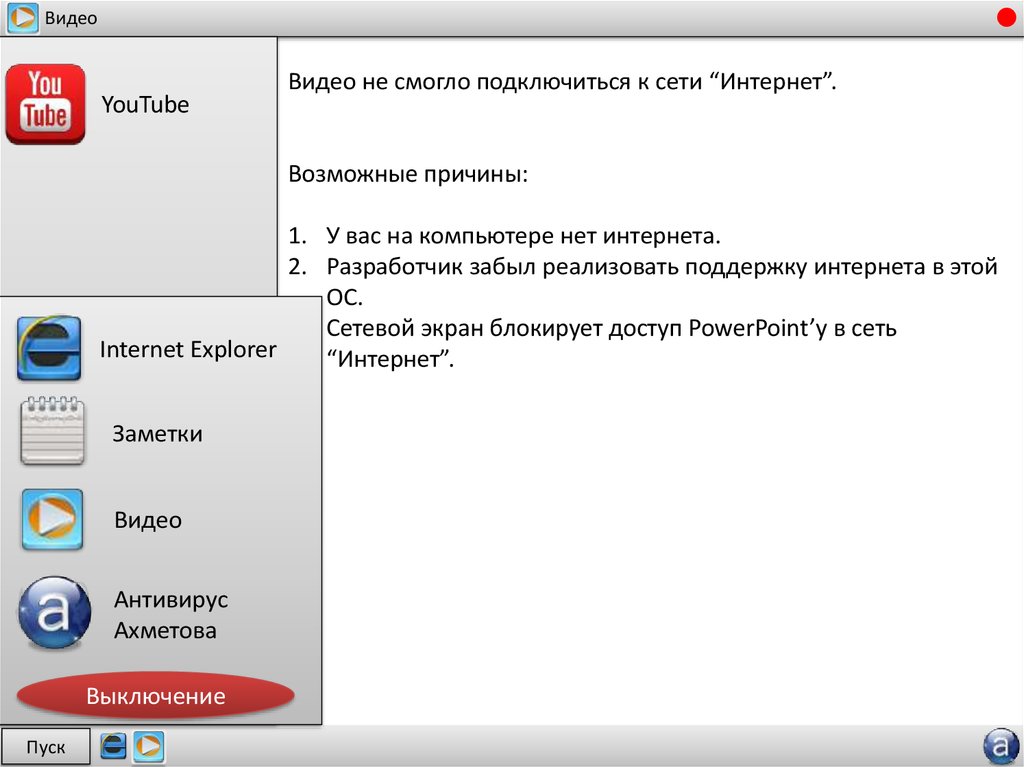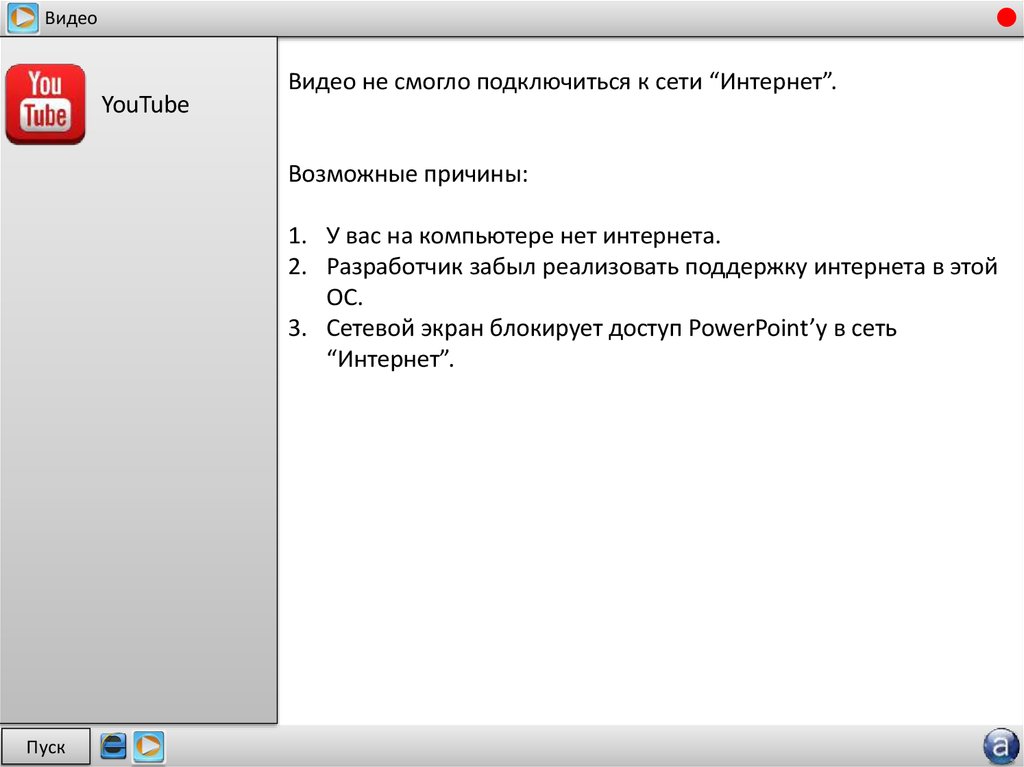Видео не смогло подключиться к сети “Интернет”.