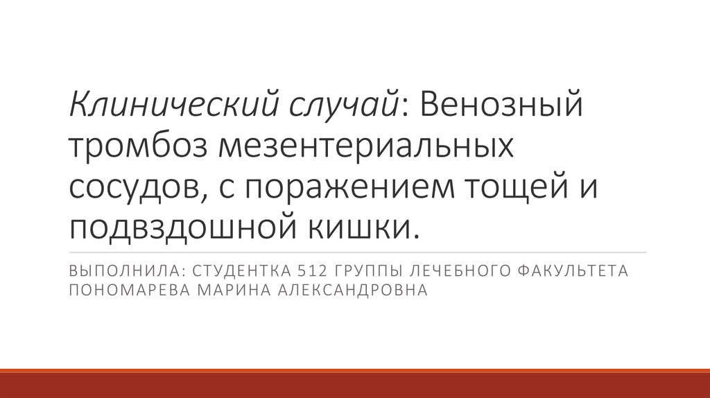 1. Клинический случай: Венозный тромбоз мезентериальных сосудов, с поражением тощей и подвздошной кишки.