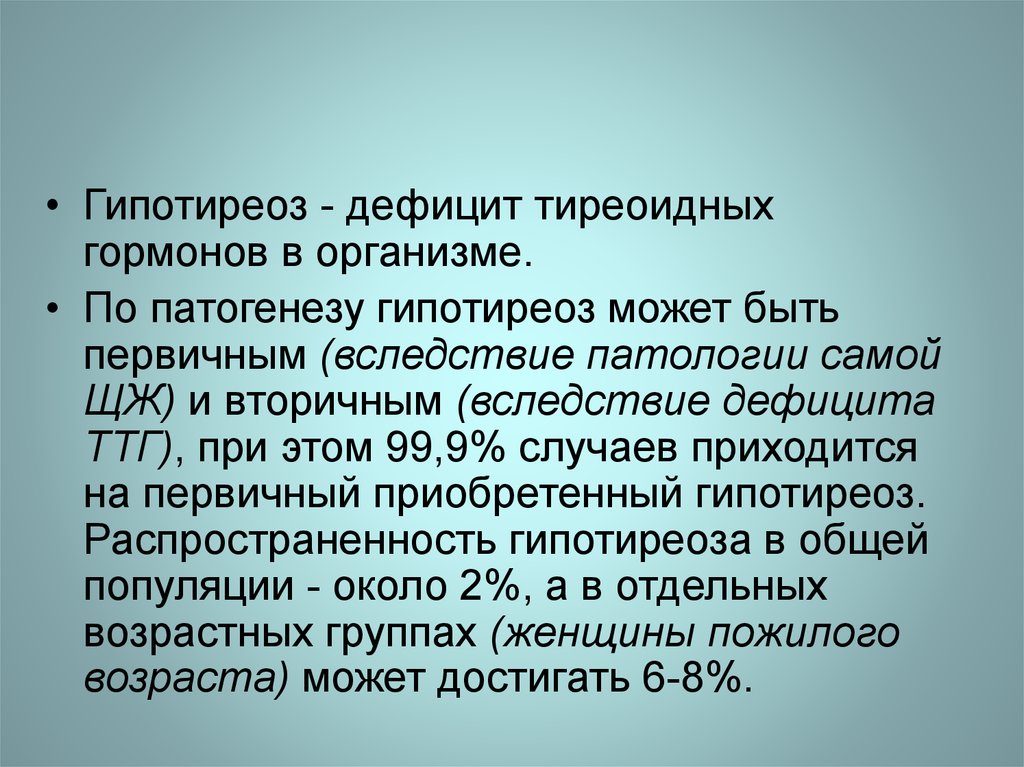 ЩЖ) и вторичным (вследствие дефицита