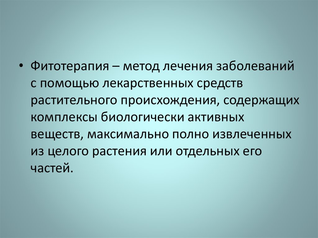 • Фитотерапия – метод лечения заболеванийс помощью лекарственных средств