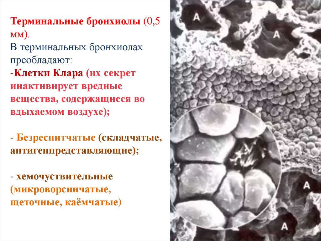 Респираторный отдел (ацинусы – 150 тыс.)-Альвеолярные бронхиолы