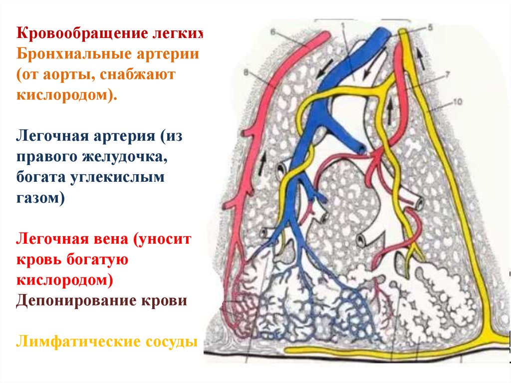 вдыхаемого воздуха кислорода и снабжение им крови, а также удаление