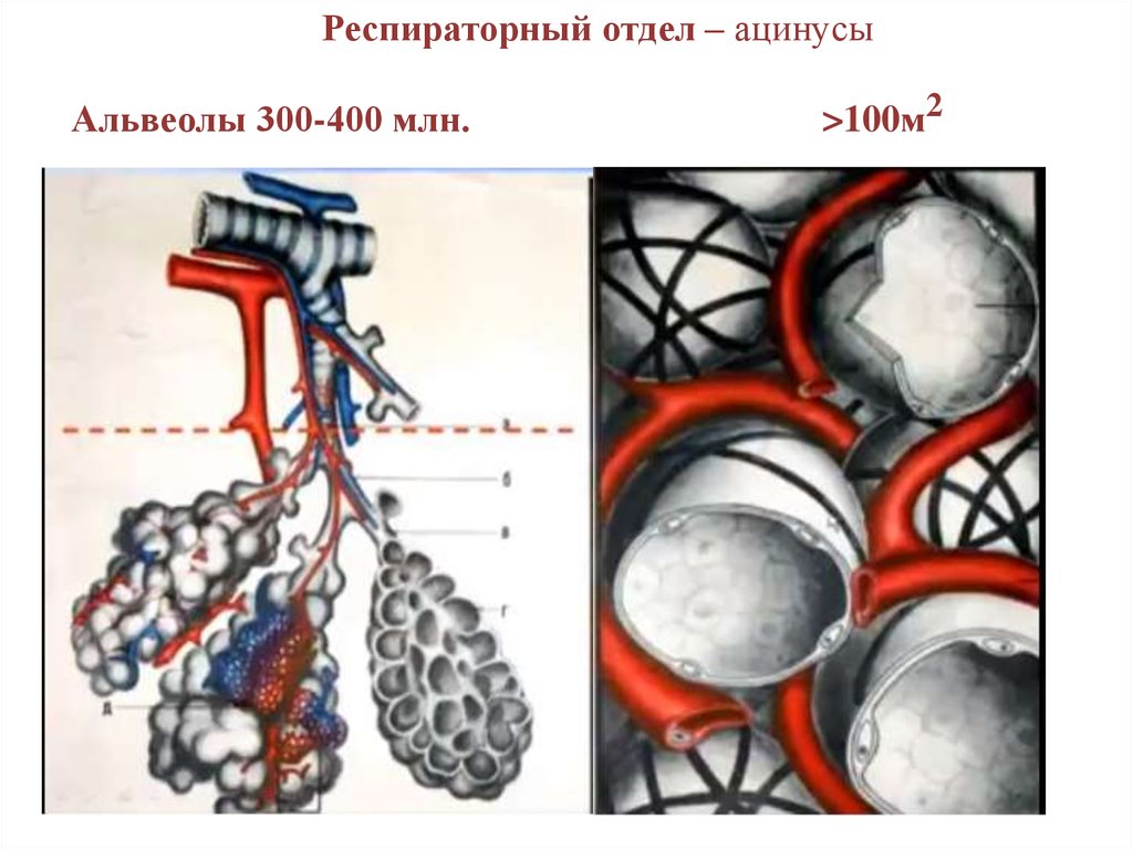 Респираторный отдел – ацинусыАльвеолы 300-400 млн.