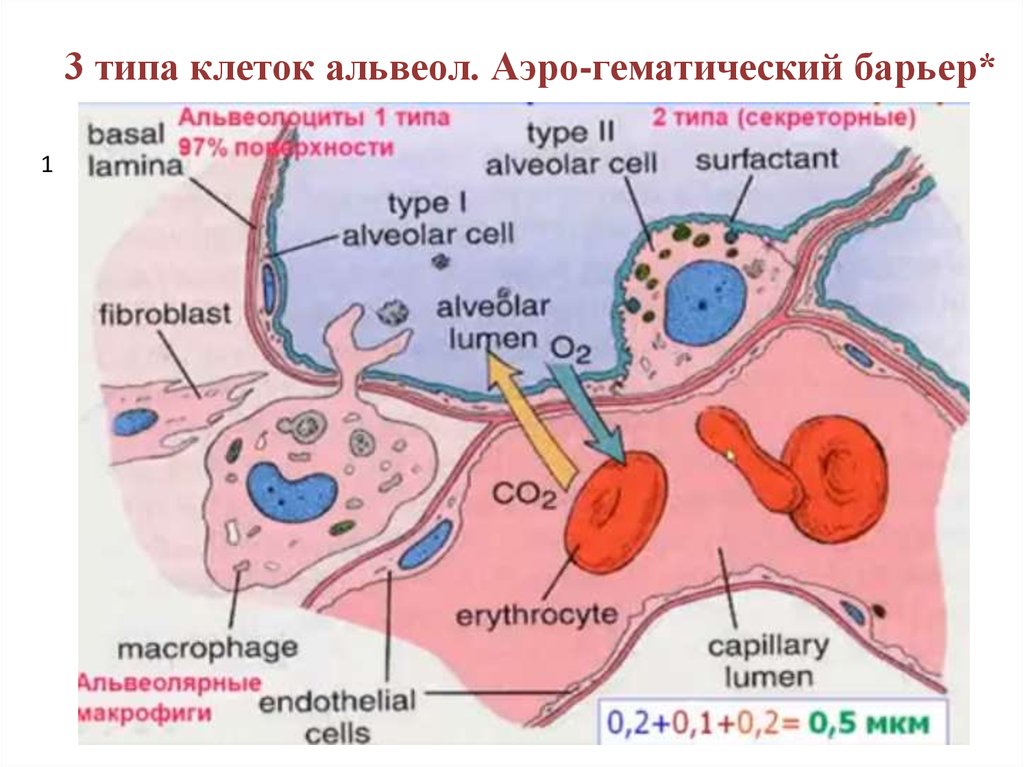 3 типа клеток альвеол. Аэро-гематический барьер*1