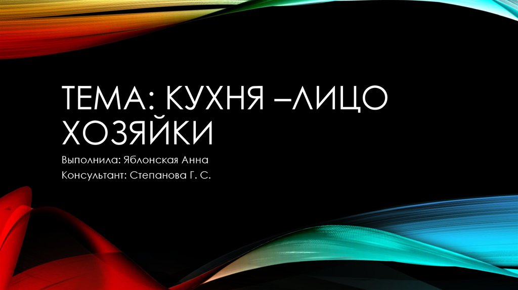 Тема: Кухня –лицо хозяйки