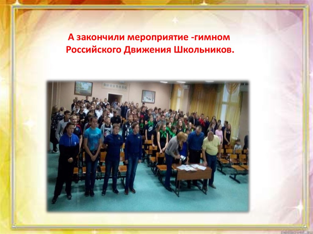 А закончили мероприятие -гимномРоссийского Движения Школьников.