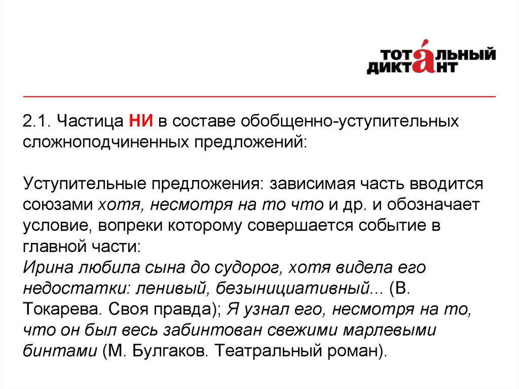 2.1. Частица НИ в составе обобщенно-уступительныхсложноподчиненных предложений: