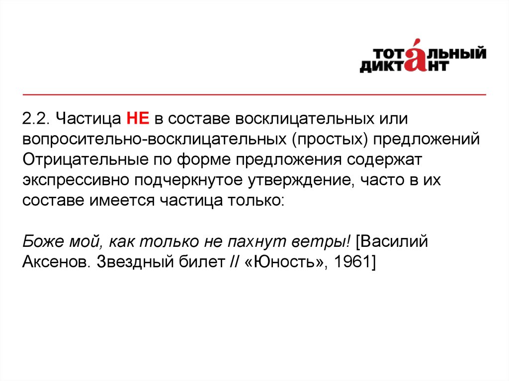 2.2. Частица НЕ в составе восклицательных иливопросительно-восклицательных (простых) предложений