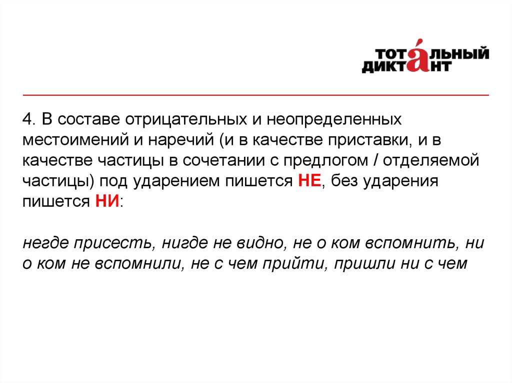 Готовимся к диктанту. Правописание частиц НЕ и НИ. (Занятие 4)