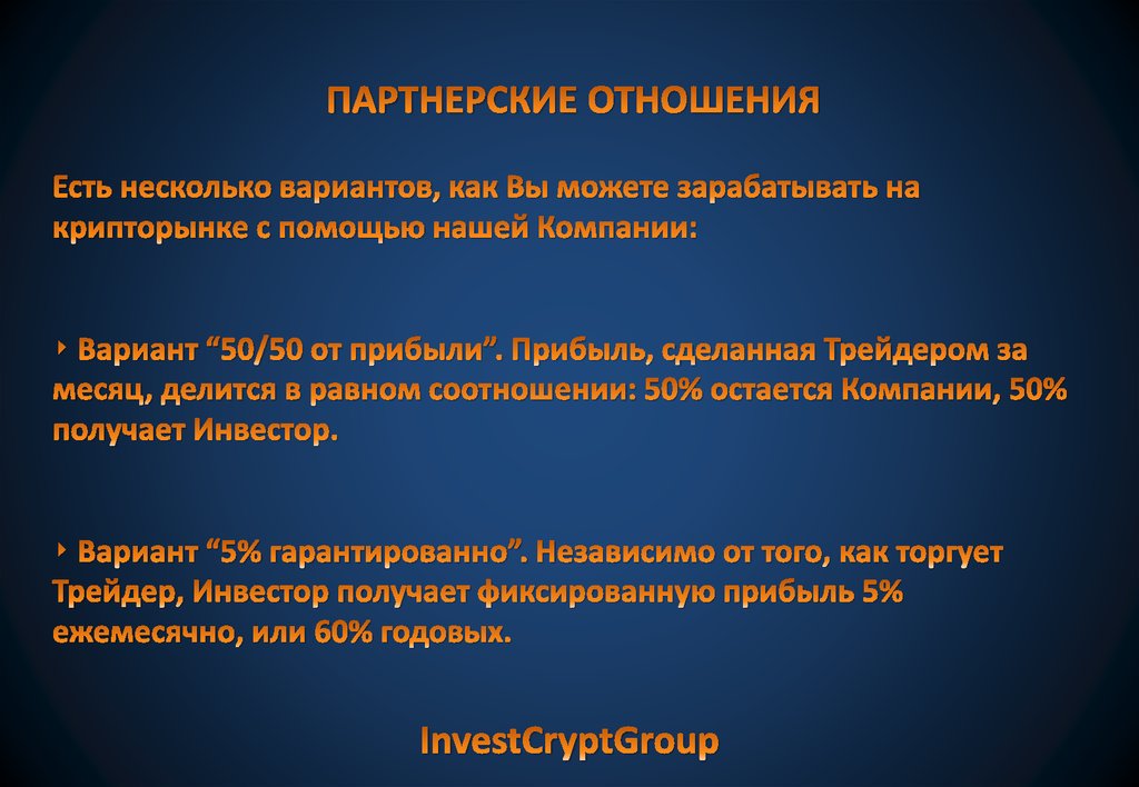InvestСryptGroup. Понятный, честный и открытый заработок на криптовалюте