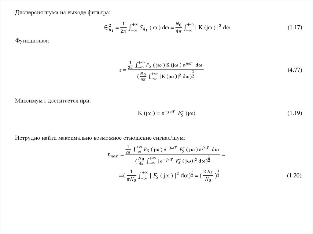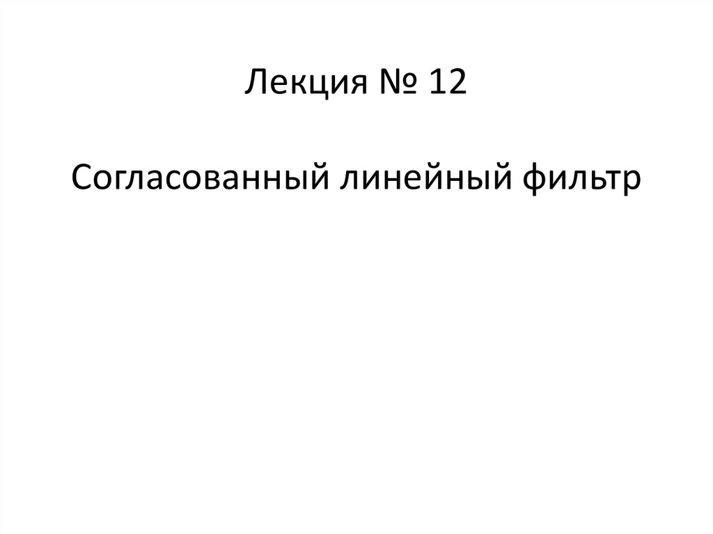 Статистическая теория радиотехнических систем. Согласованный линейный фильтр. (Лекция 12)