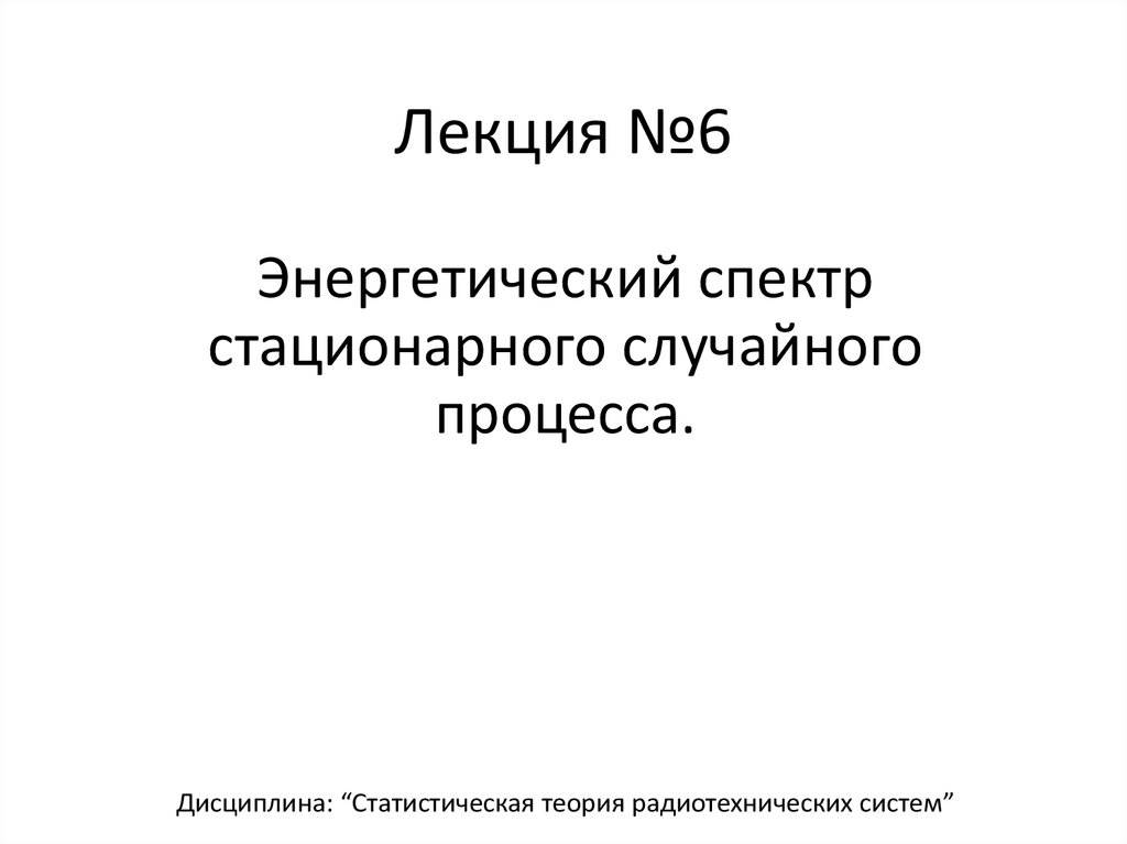 Статистическая теория радиотехнических систем. Энергетический спектр стационарного случайного процесса. (Лекция 6)