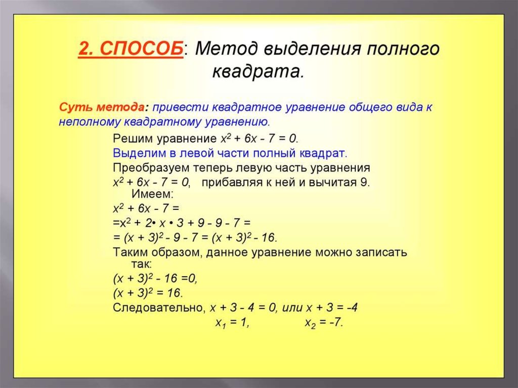 Квадратные уравнения. Полные и неполные квадратные уравнения