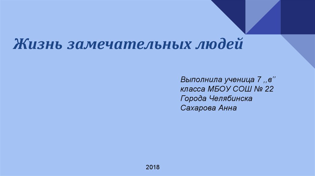 Жизнь замечательных людейВыполнила ученица 7 ,,в’’