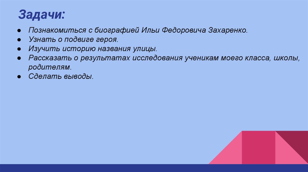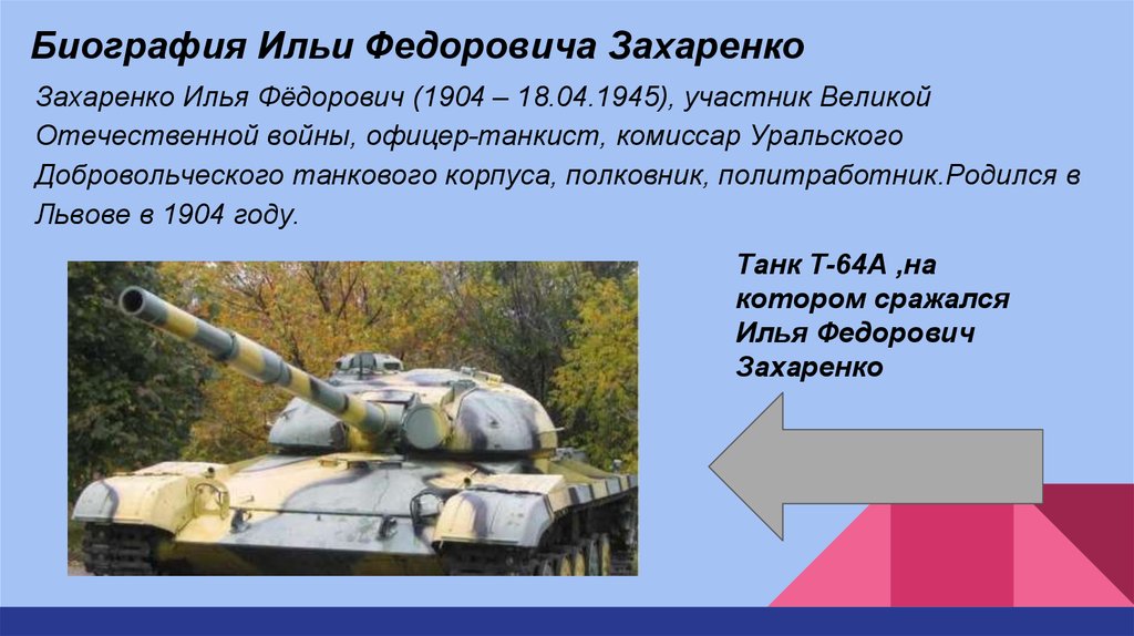Задачи:Познакомиться с биографией Ильи Федоровича Захаренко.