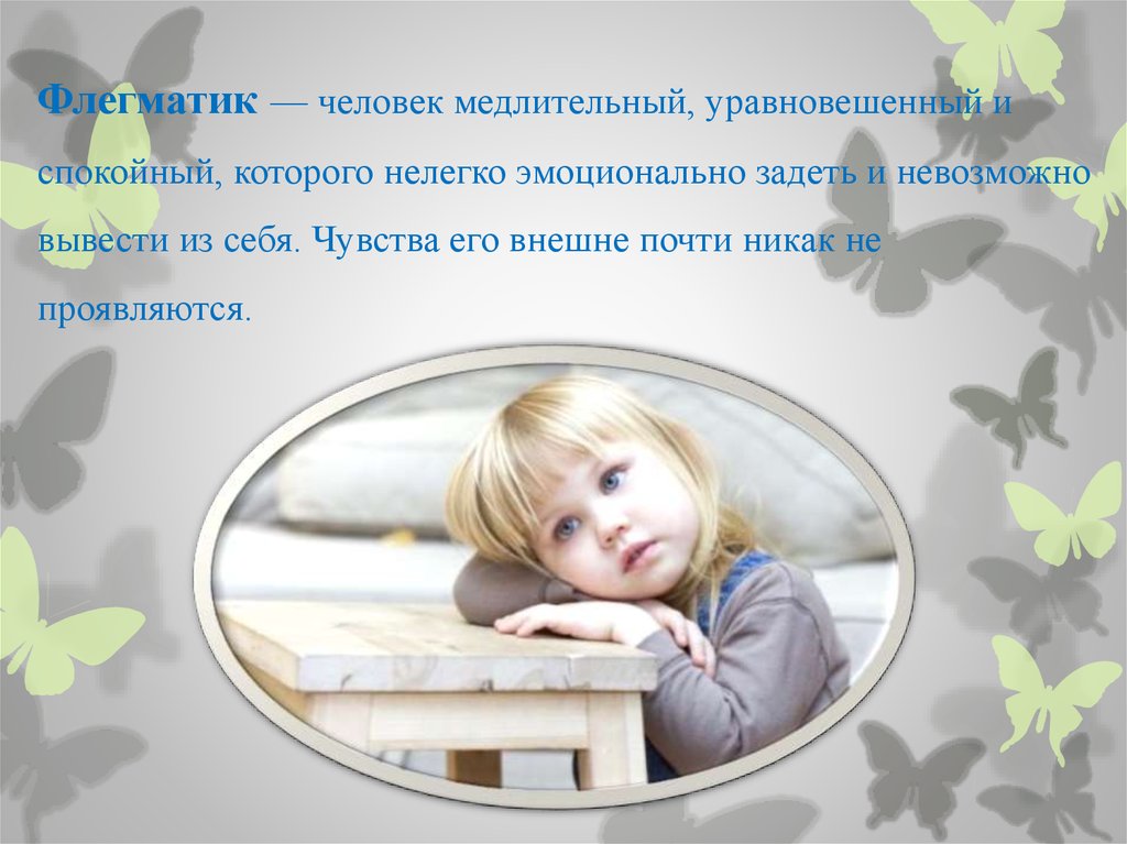 Флегматик — человек медлительный, уравновешенный испокойный, которого нелегко эмоционально задеть и невозможно