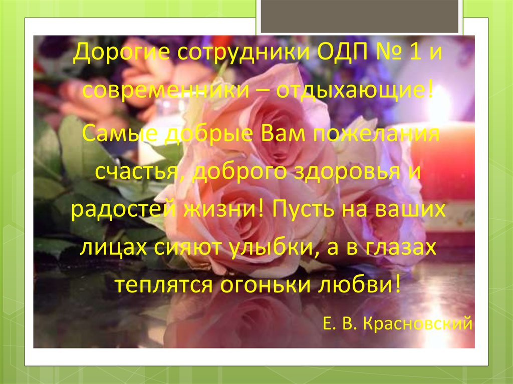 Дорогие сотрудники ОДП № 1 исовременники – отдыхающие!