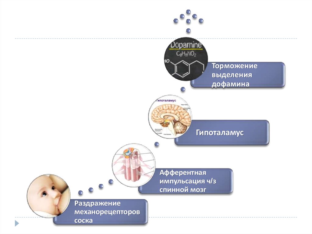 Во время беременности лактация не происходит, таккак прогестерон блокирует высвобождение