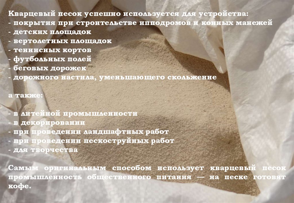 кварцевых зерен В силу своих свойств кварцевый песок широко