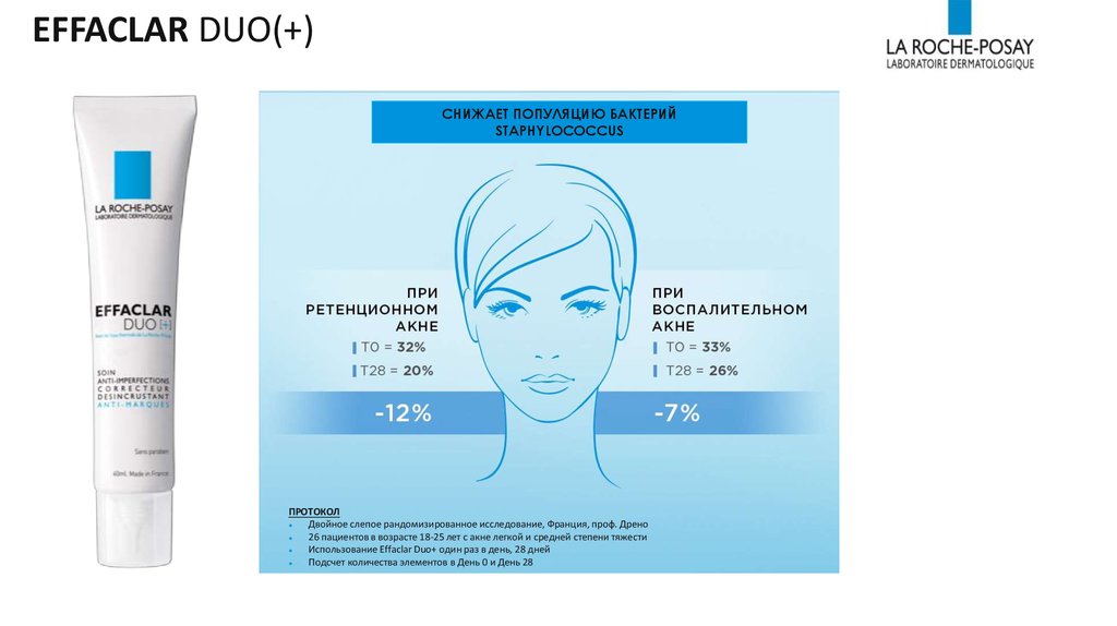 EFFACLAR DUO(+)СНИЖАЕТ ПОПУЛЯЦИЮ БАКТЕРИЙ
