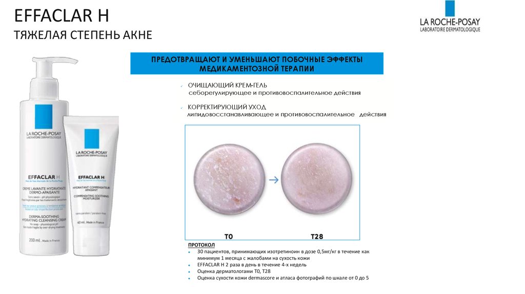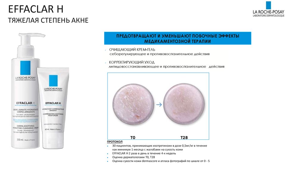 EFFACLAR Н 2 раза в день в течение 4-х недель