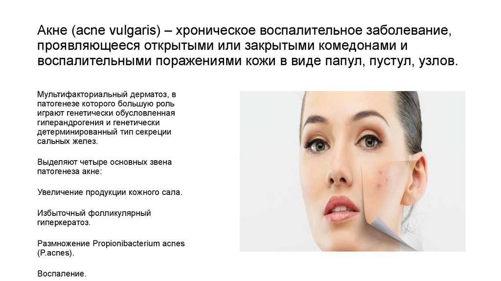 Акне (аcne vulgaris) – хроническое воспалительное заболевание,проявляющееся открытыми или закрытыми комедонами и