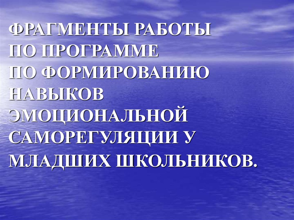 1. ФРАГМЕНТЫ РАБОТЫ ПО ПРОГРАММЕ ПО ФОРМИРОВАНИЮ НАВЫКОВ ЭМОЦИОНАЛЬНОЙ САМОРЕГУЛЯЦИИ У МЛАДШИХ ШКОЛЬНИКОВ.