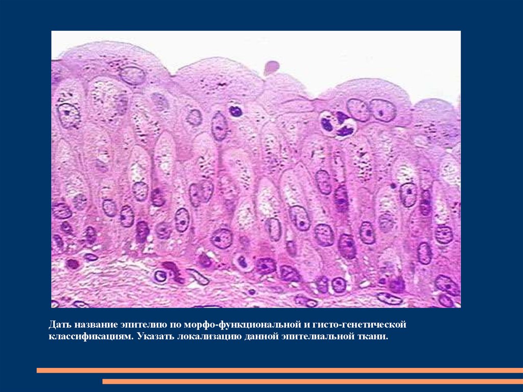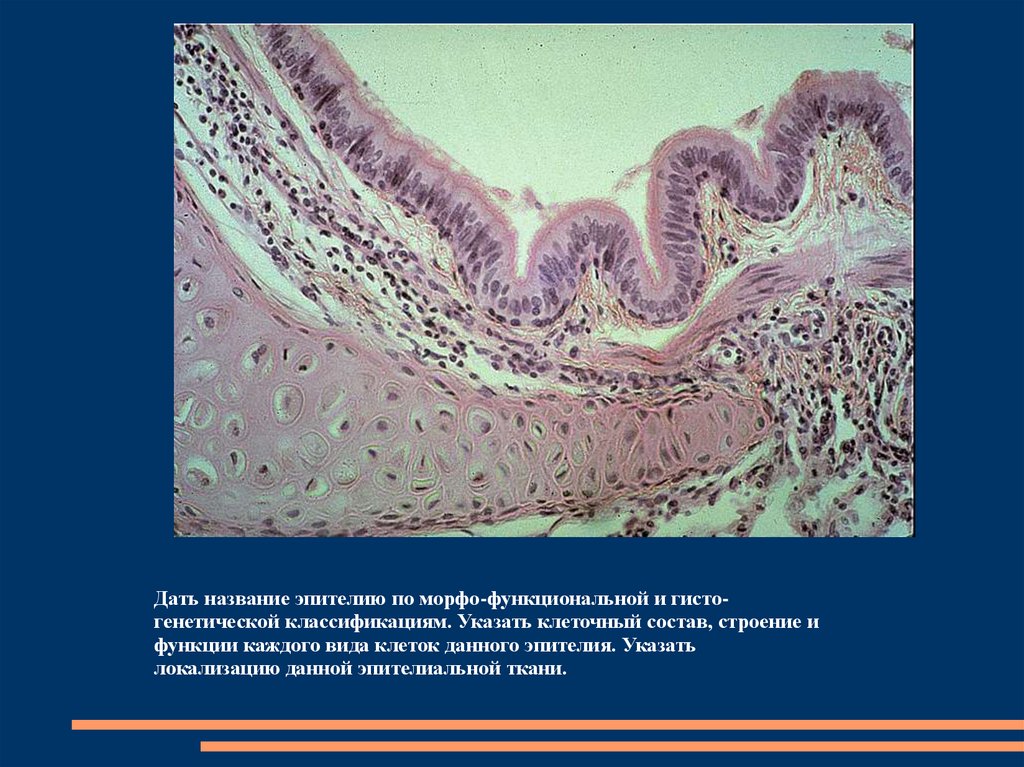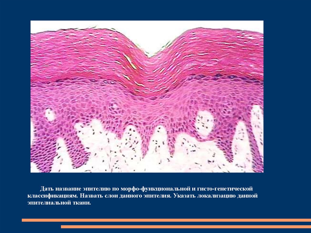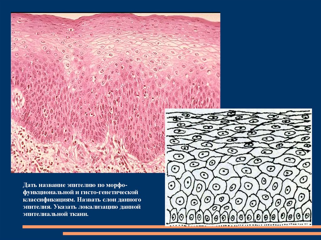 Дать название эпителию по морфо-функциональной игисто-генетической классификациям. Назвать слои