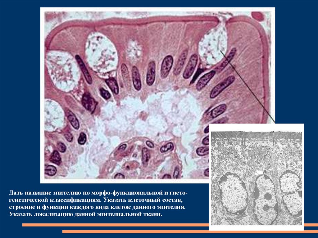 Дать название эпителиюпо морфофункциональной и гистогенетической
