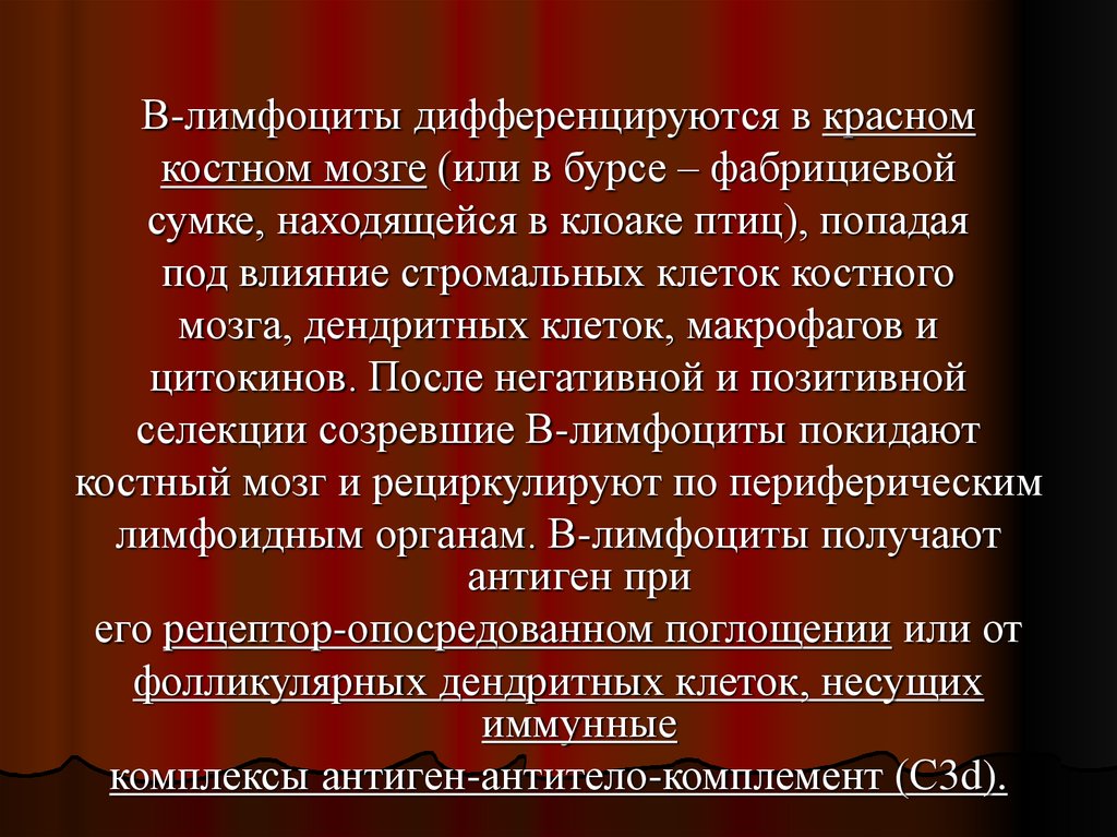 лимфоидным органам. В-лимфоциты получают